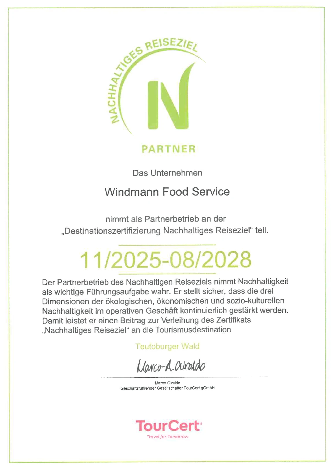 Die Modellregion hat sich für eine Zertifizierung nach TourCert-Kriterien entschieden. Diese Zertifizierung bietet eine übergreifende Struktur für die große Vielfalt an bestehenden Zertifizierungen und Siegeln. Bereits vorhandene Zertifizierungen wie Green Choice können in der TourCert-Zertifizierung zusammengefasst werden.